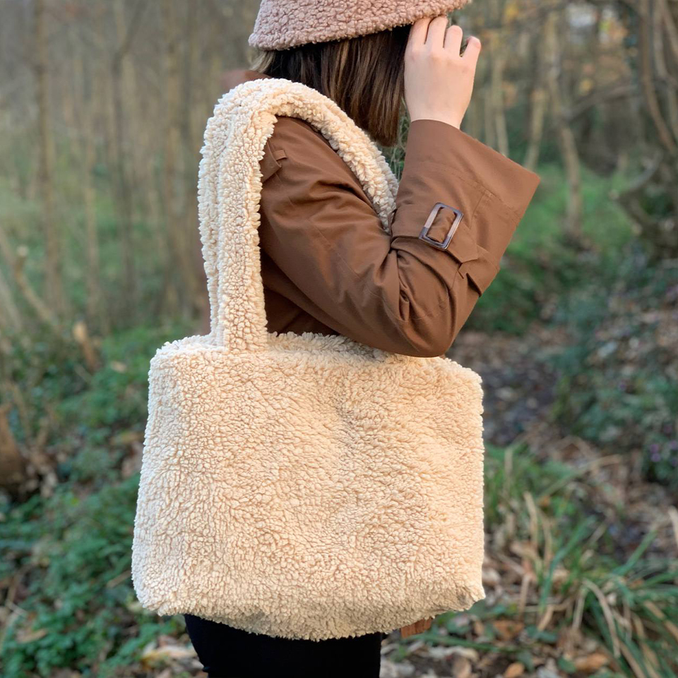 کیف تدی و خز کد 07 جُیا با پارچه تدی وارداتی بدون زیپ و دکمه با بندهای محکم استرکشی شده ابعاد از 35*35 تا 40*40 متغیره