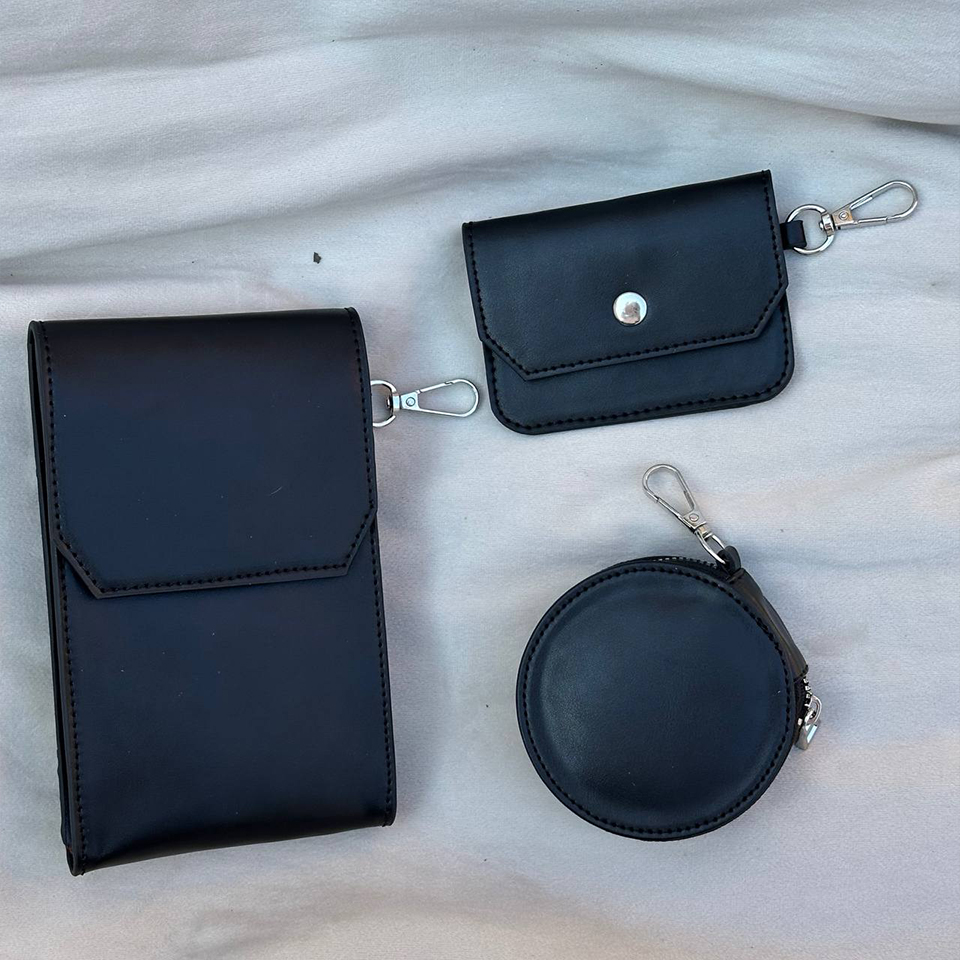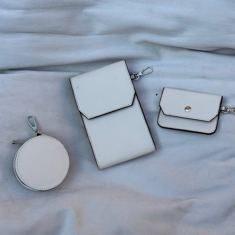 این محصول شامل یک بند و سه آیتم هست که قابل جدا شدن و وصل شدن به کیف های دیگه یا کمربند و جاسوئیچی و … میباشد.